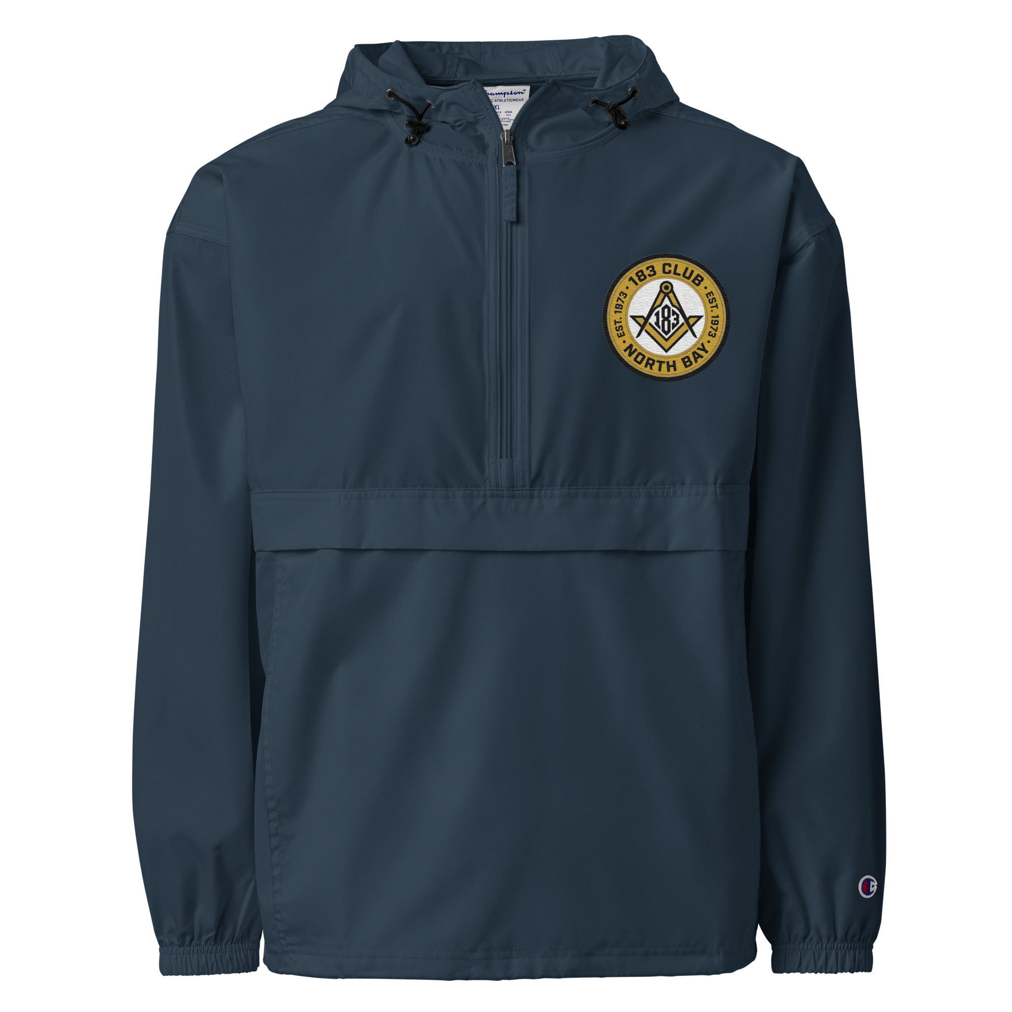 Protect yourself from the elements with this Champion packable jacket. This wind and rain resistant polyester jacket with a detailed embroidery design has a practical hood, front kangaroo pocket, and zipped pouch pocket which you can pull out and use to scrunch the jacket into for convenient storage.